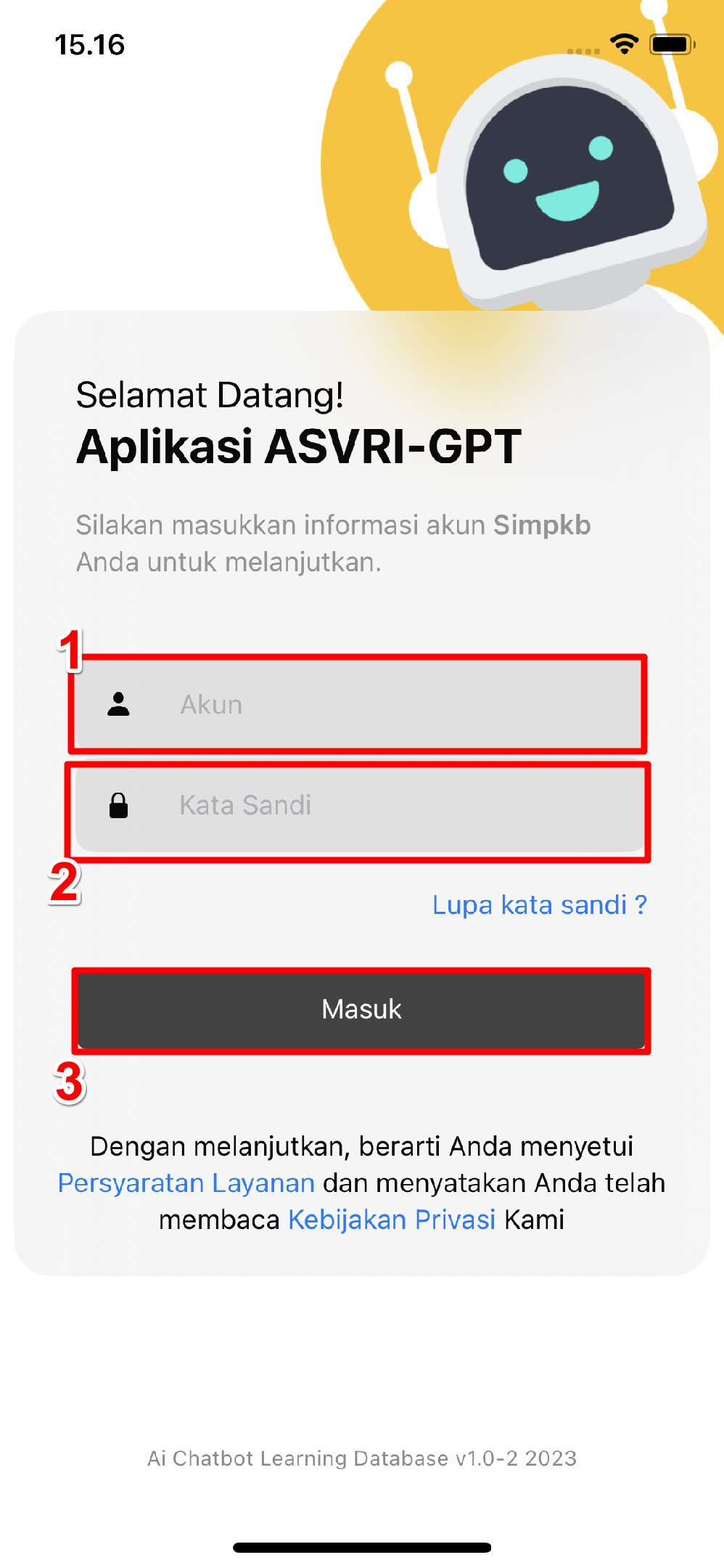Setelah aplikasi terinstall pada perangkat Anda, aplikasi akan menampilkan halaman login.