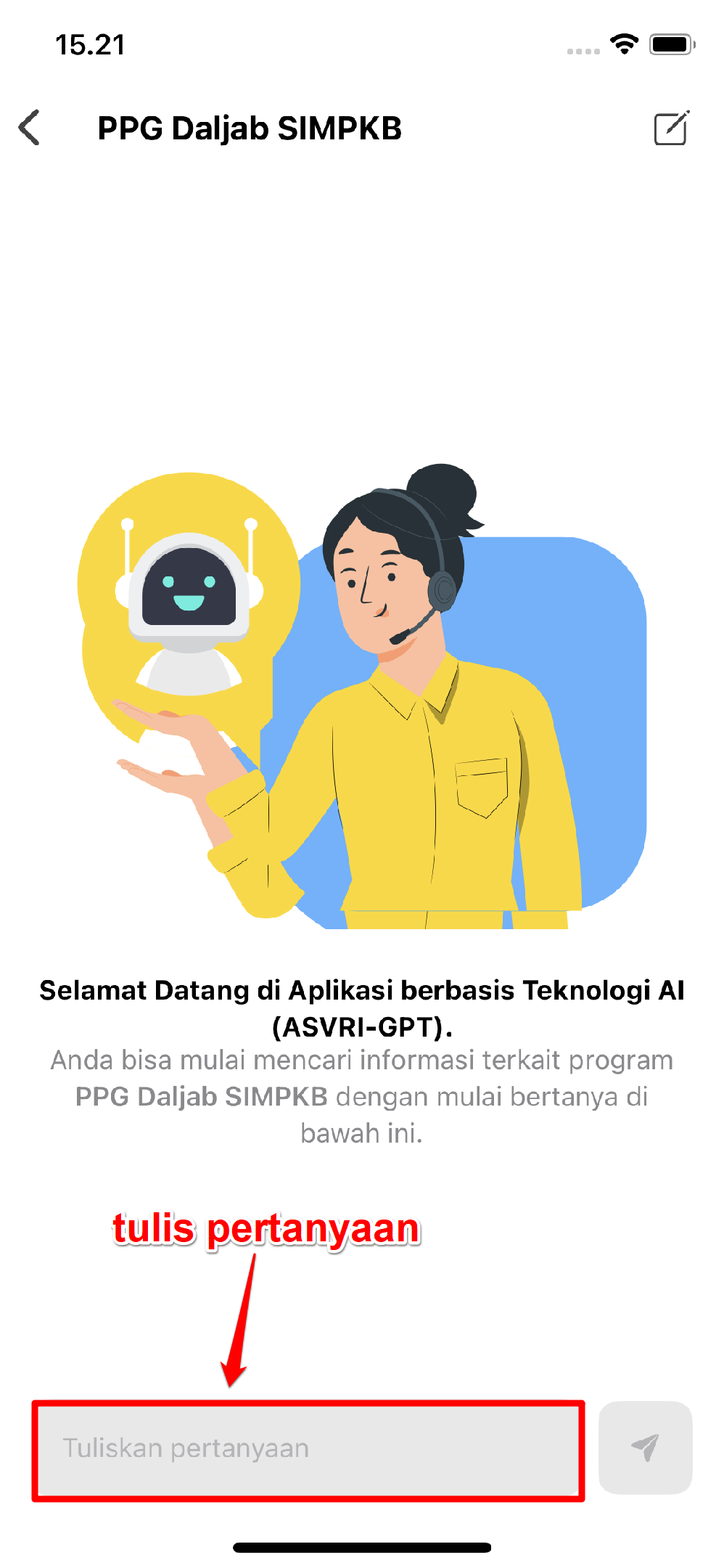 Berikut panduan langkah-langkah singkat yang dilakukan untuk akses Chatbot Asvri AI berbasis mobile :