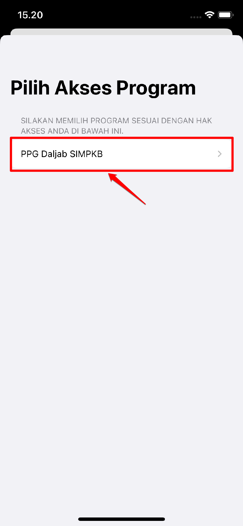 Setelah suskses login pada aplikasi, sistem akan menampilkan daftar program yang dapat Anda akses. Klik pilih program pada daftar